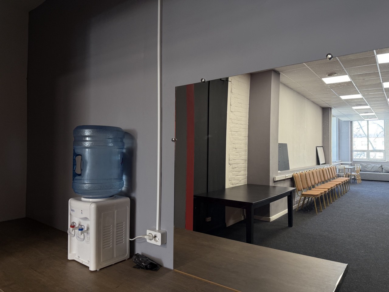 Просторная светлая аудитория отлично подходит для проведения презентаций, бизнес-встреч, лекций, тренингов, семинаров, записи подкастов.